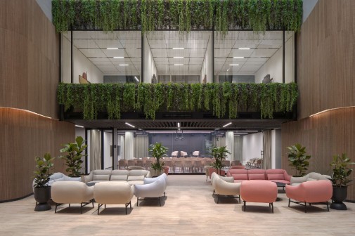 Umieszczanie roślin doniczkowych oraz innych form zieleni, takich jak ściany roślinne, stanowi jeden z fundamentów biophilic design. Równie ważny jest dobór materiałów i faktur nawiązujących do tych występujących w przyrodzie. Naturalne materiały, takie jak drewno, kamień czy rattan ocieplają wnętrza, wprowadzając do nich harmonię i spokój. „Materiały dobieramy tak, aby były jak najbardziej przyjazne człowiekowi, wspierały jego well-being, akustykę i ogólny dobrostan. Z doborem roślin pomagają nam specjaliści od zieleni z Zielonej Fabryki z Gniezna” – mówią architektki SAAN.