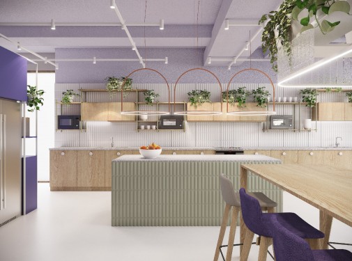 Kuchnia biurowa z założenia jest miejscem przerwy i spotkań, ale często bywa traktowana wyłącznie funkcjonalnie. W projekcie Fresha 2.0 strefa kuchenna to nie tylko zaplecze funkcjonalne, ale centralne miejsce integracji pracowników.