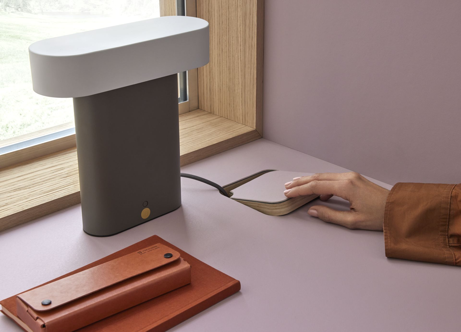 Furniture Linoleum 4010 lilac close up desk with hand